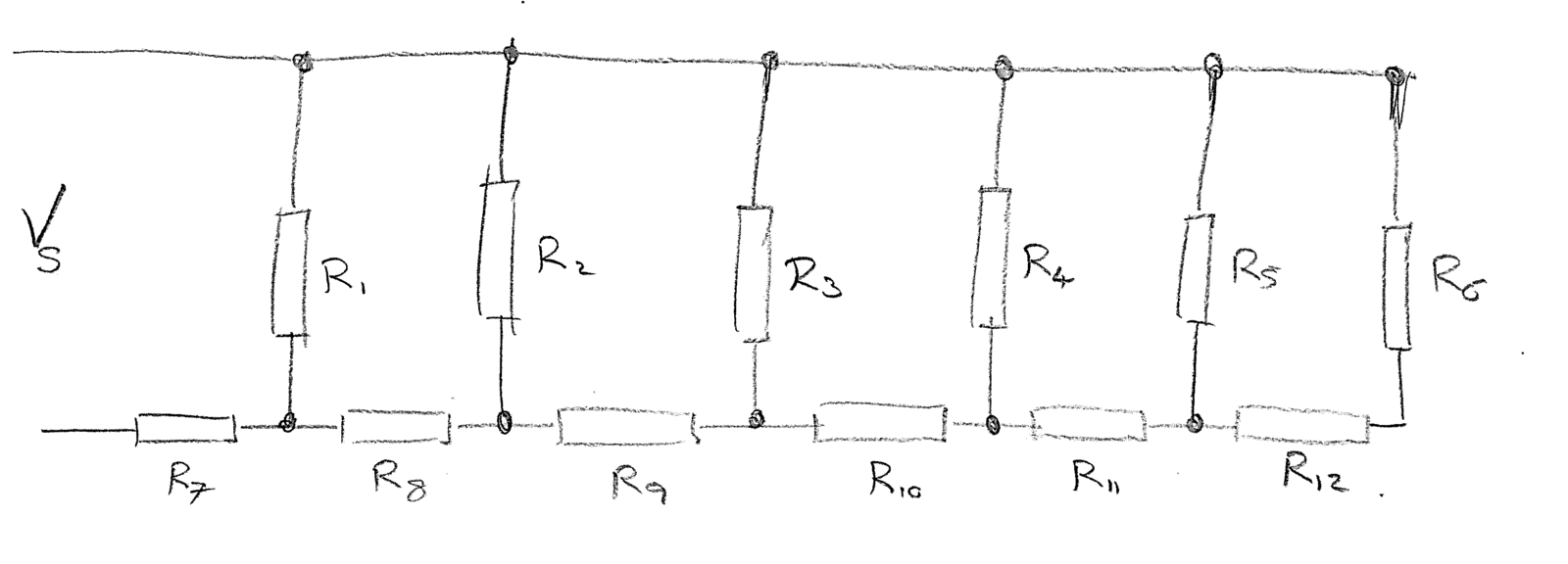 The ladder arrangement consists of two resistors, i.e., a base resistor r and a 2r resistor, which is twice the. The termination resistor and is connected to ground. The termination resistor assures that the thevenin resistance of the. Well, it is just a cleverly arranged set of resistors that gives you the unique action of turning binary signals into an analogue output voltage. Adding resistors in series and parallel; It works by arranging resistors in a. A simple six resistor ladder circuit to solve many ways: